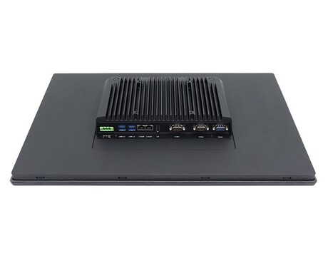 The 21.5″ TFT-LCD display offers full HD (1920 x 1080) resolution, with an optional 1000 nits high-brightness panel for outdoor or high-glare conditions. The projected capacitive multitouch screen includes a 7H anti-scratch surface, optical bonding, and anti-glare and anti-reflection coatings to maintain visibility in varying light environments. An optional auto-dimming feature allows the display to adjust brightness automatically.