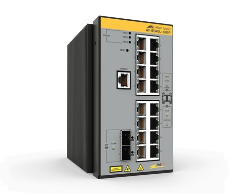 The Allied Telesis IE340L-18GP Industrial Gigabit PoE+ Layer 3 switch is designed to deliver reliable high-performance networking in demanding industrial environments such as manufacturing plants, transport infrastructure, and physical security systems.
